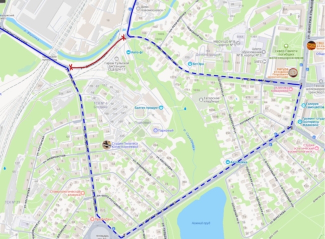 При этом движение автобусов маршрутов № 2, 4, 12/15, 26, 35л, 36, 61, 66, 72, 136, 158к будет осуществляться в объезд по улицам Демонстрации, Дмитрия Ульянова, Болдина.
