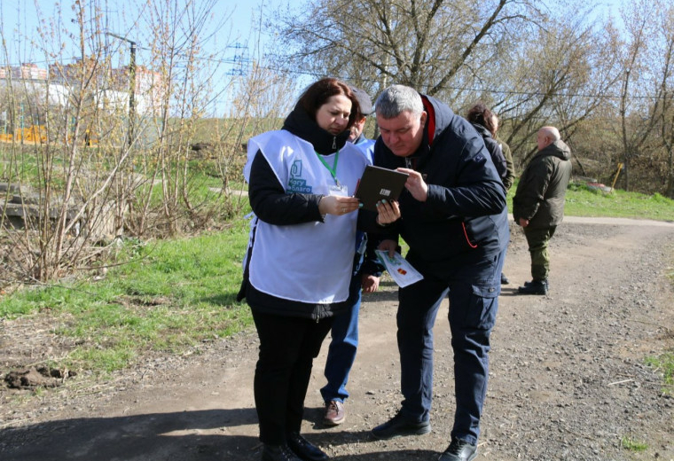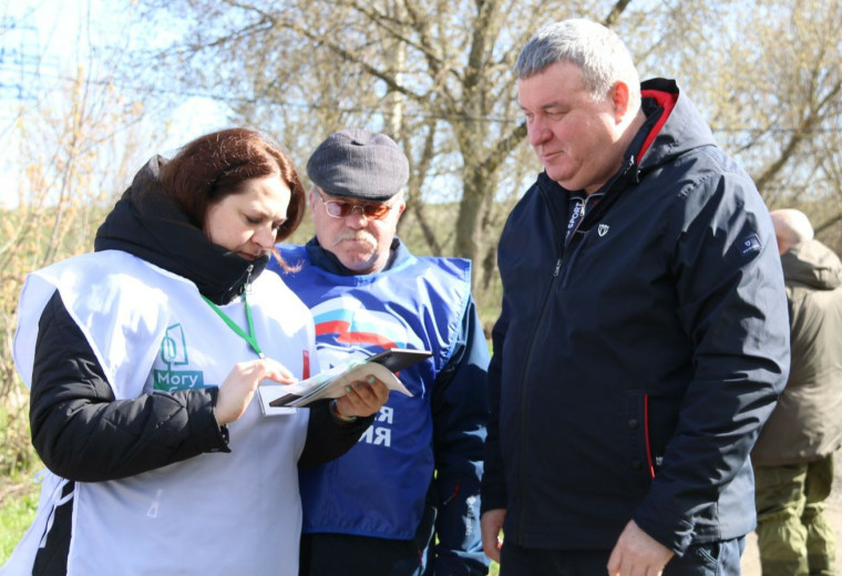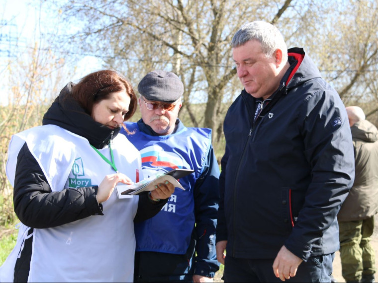 Глава городской администрации проголосовал во время субботника на ул. Новомосковской.