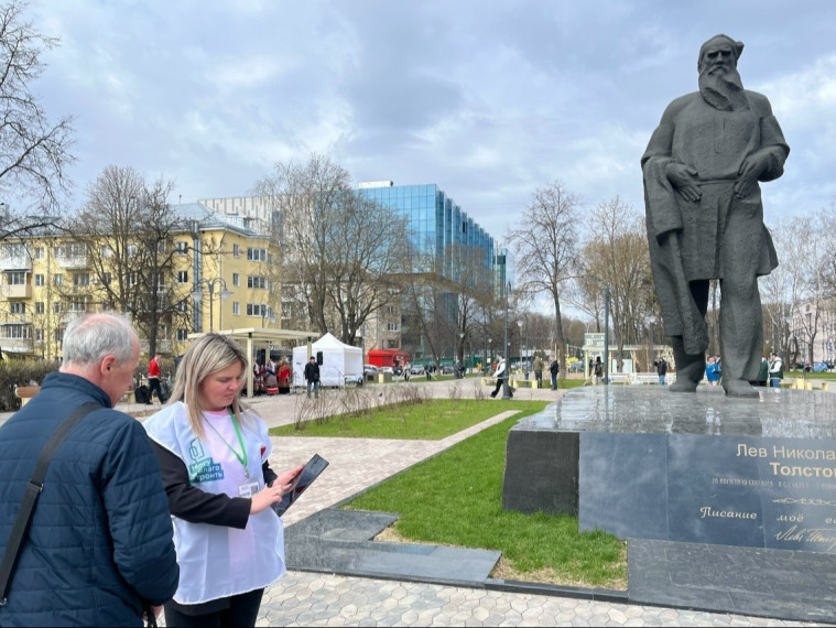 Волонтеры рассказывали тулякам о проекте «Формирование комфортной городской среды» и помогали поучаствовать во Всероссийском голосовании по отбору общественных территорий для благоустройства в областной столице в 2027 году.