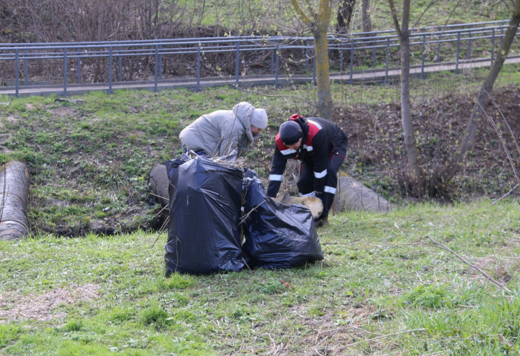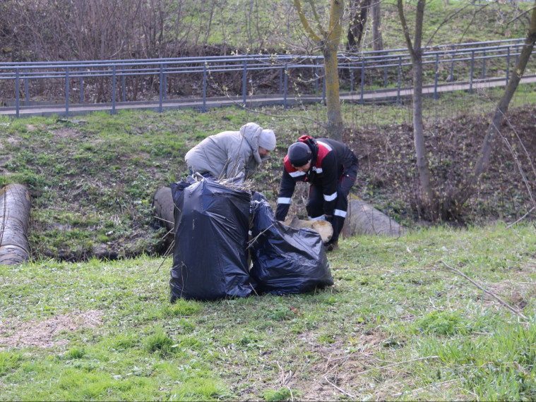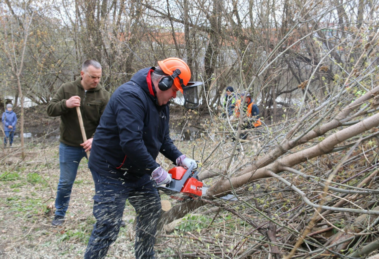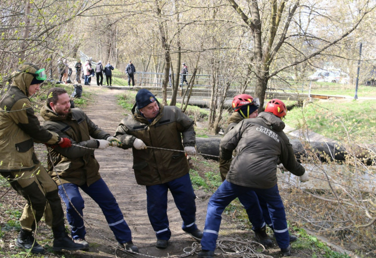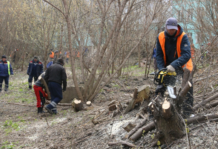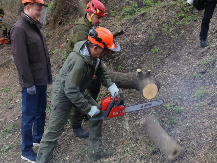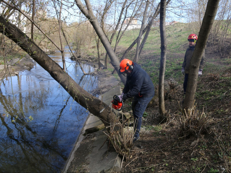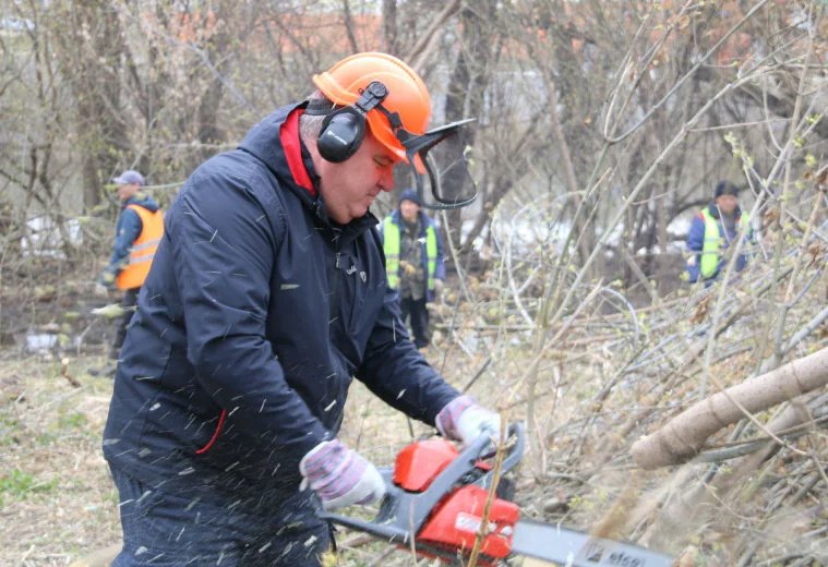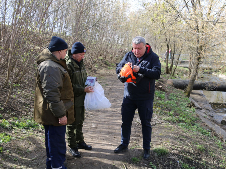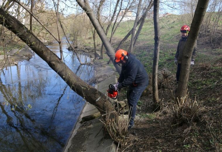 Илья Беспалов убирался на ул. Новомосковской. Здесь приводили в порядок, в том числе русло Рогожинского ручья. Глава городской администрации распиливал аварийные деревья.
