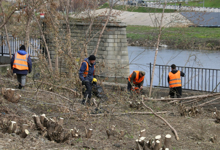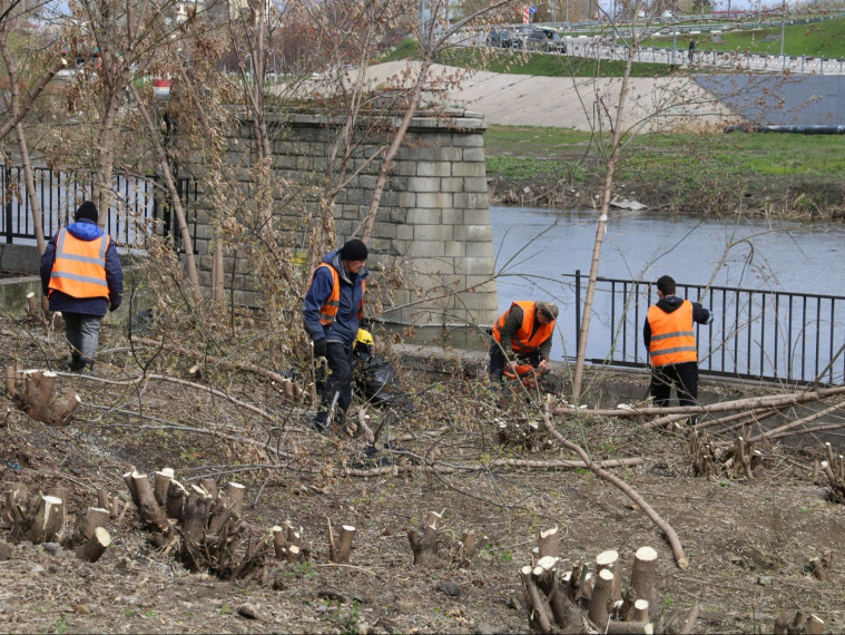 На улицах Тулы, общественных пространствах собирали летучий мусор, смёт, убирали ветки, красили бортовой камень, ограждения, деревья.