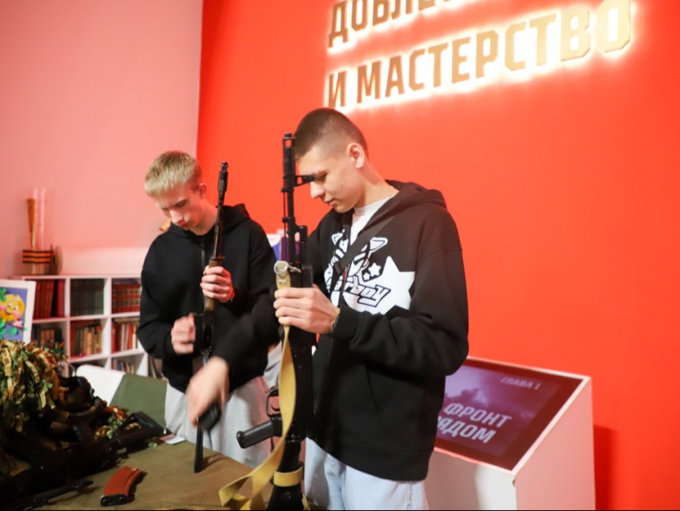На территории парка организовали интерактивную программу. Собравшиеся приняли участие в мастер-классе по сборке и разборке автомата, познакомились с образцами современного боевого оружия, поупражнялись в меткости в лазерном тире.