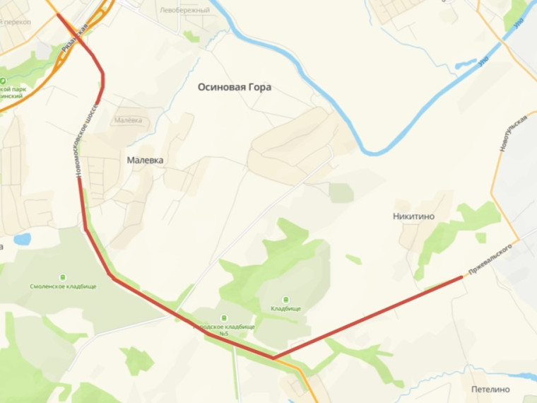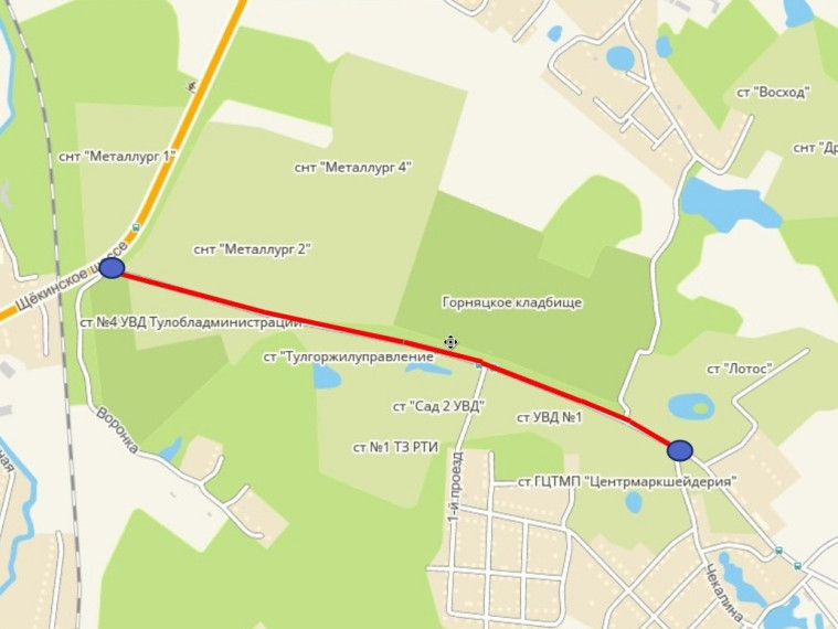 - По Новомосковскому шоссе от Оборонной улицы до поворота на ПАО «Тулачермет» (девятый километр), включая примыкающие улицы и дороги;