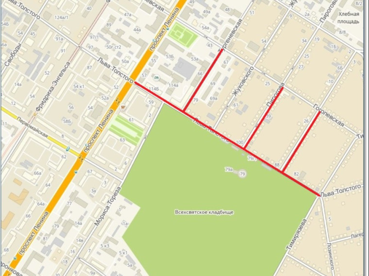 - по улице Льва Толстого (на участке от Тимирязева до проспекта Ленина);