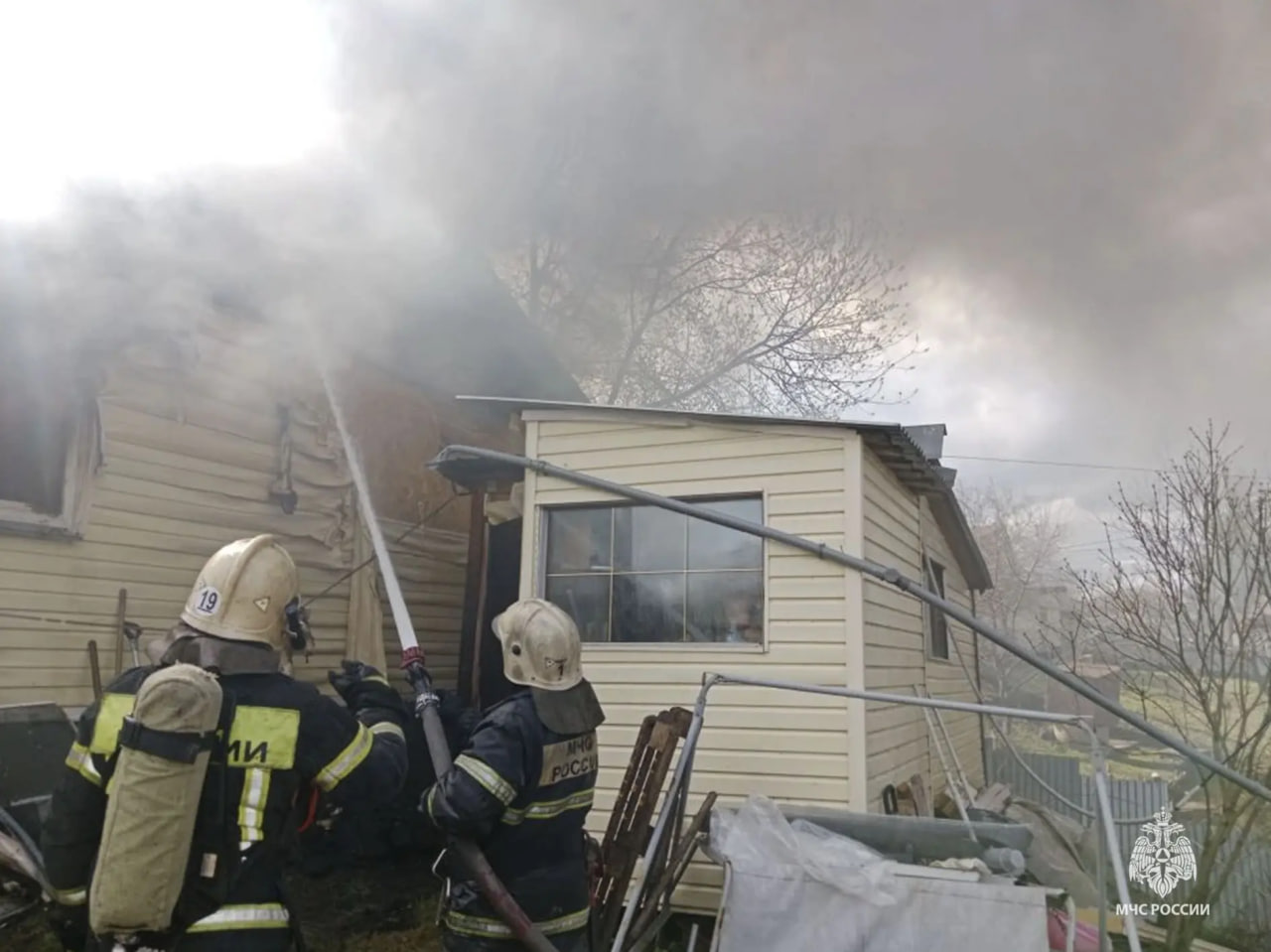 А в деревне Малые Тетерки 13 сотрудников МЧС и пять машин ликвидировали огонь в заброшенном здании.