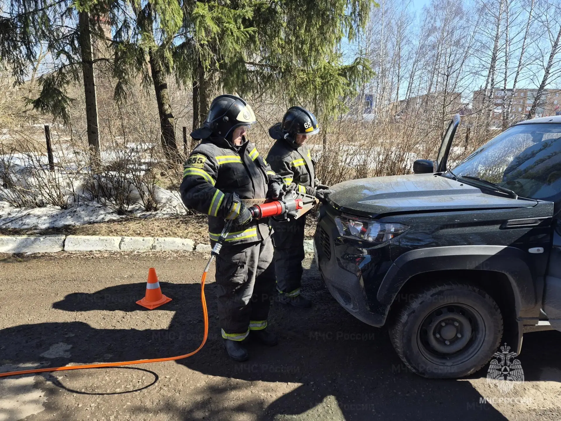 Затем участники учений отработали еще один важный сценарий — тушение условно загоревшегося автомобиля. С этой задачей пожарно-спасательные подразделения тоже справились оперативно.