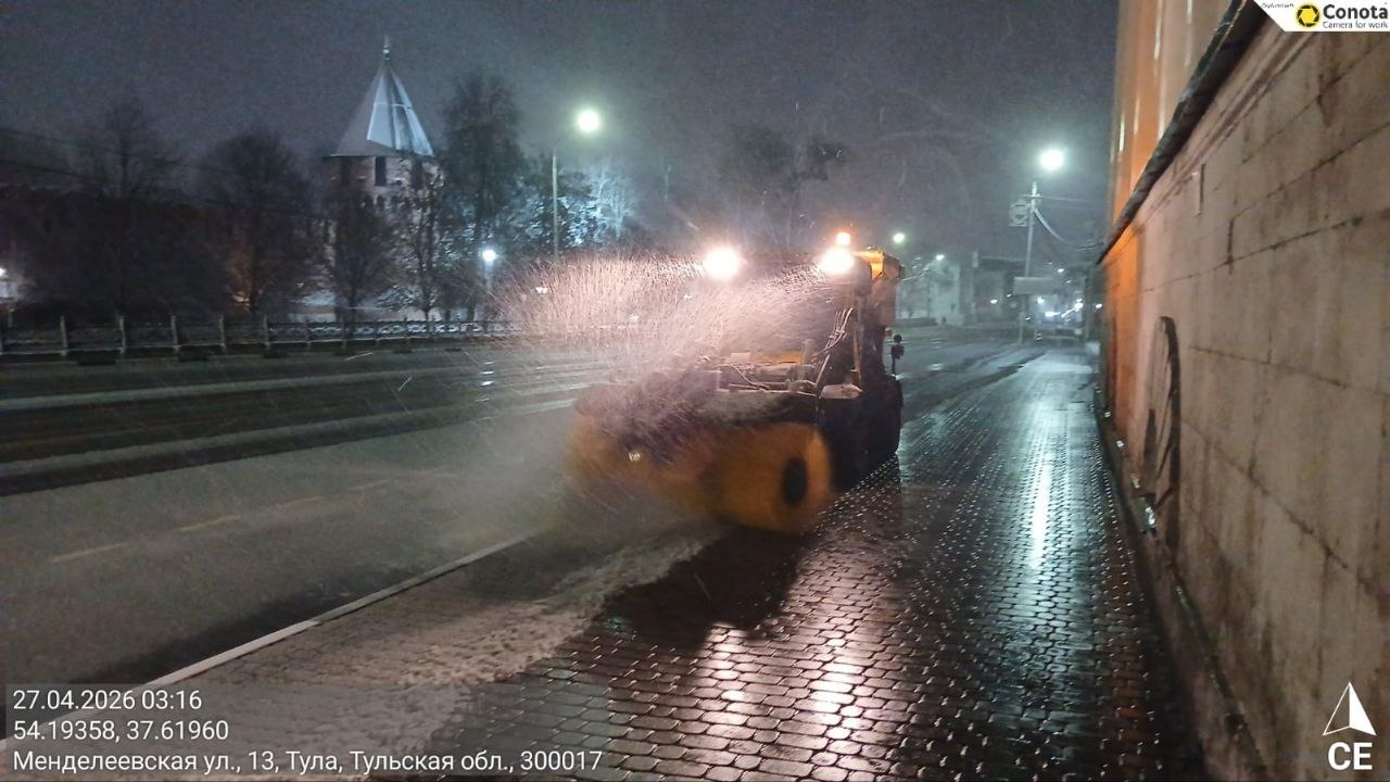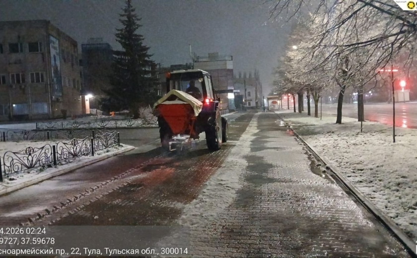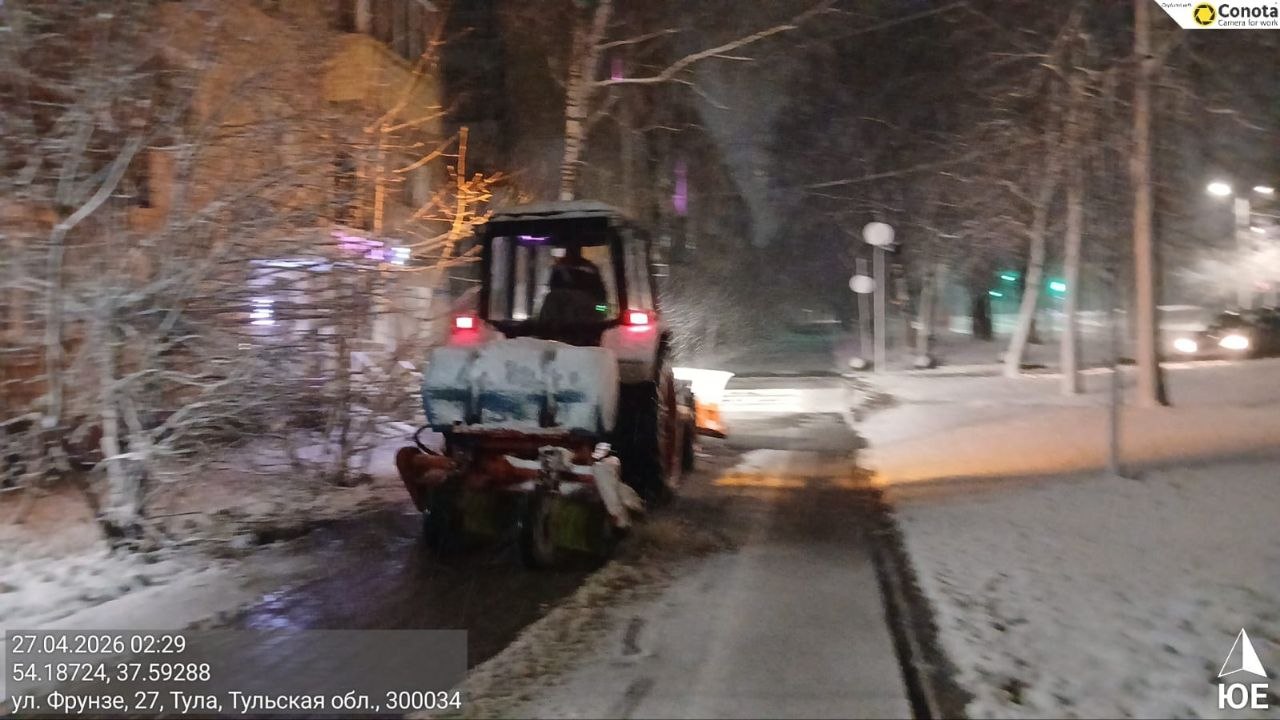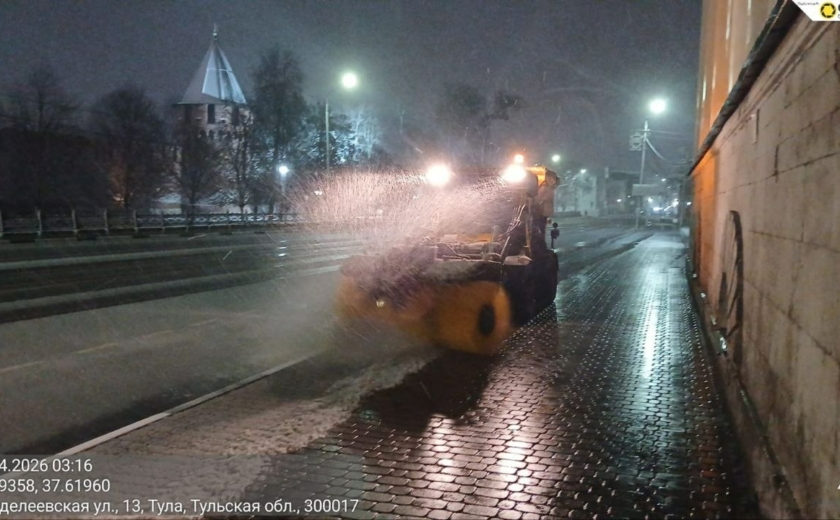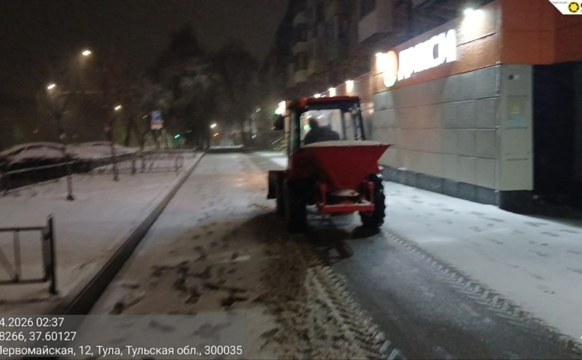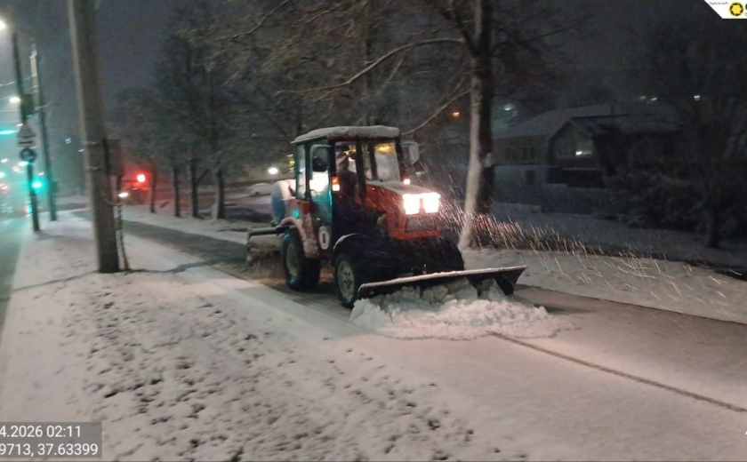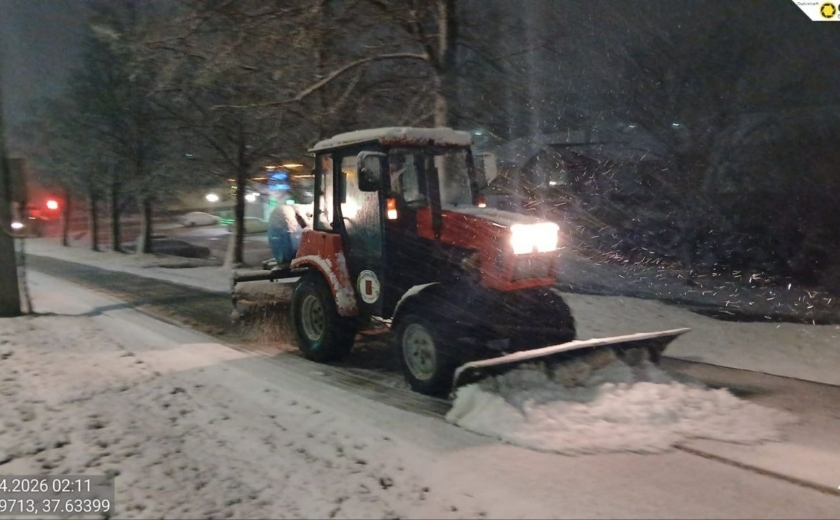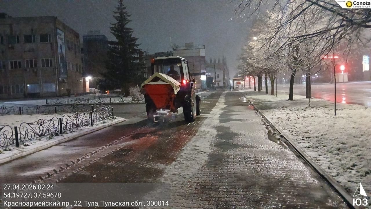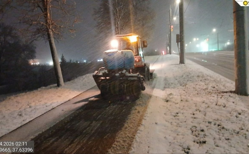 Тракторная техника и малая механизация очищали тротуары и пешеходные переходы, подметая их и обрабатывая реагентами.