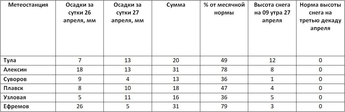 Отеметим, что больше всего осадков за минувшие двое суток выпало в Алексине и Ефремове. В этих муниципалитетах насчитали свыше 70% от месячной нормы. Обошел снегопад стороной Суворов и Узловую. Там выпала треть от месячной нормы осадков.