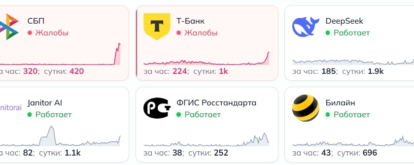 Утром 3 апреля россияне столкнулись с масштабным сбоем в работе трех банков: «Сбера», Т-Банка и ВТБ. По данным сайта Down Detector, в Тульской области число жалоб на работу сервисов остается средним, хотя с каждым часом их количество возрастает.