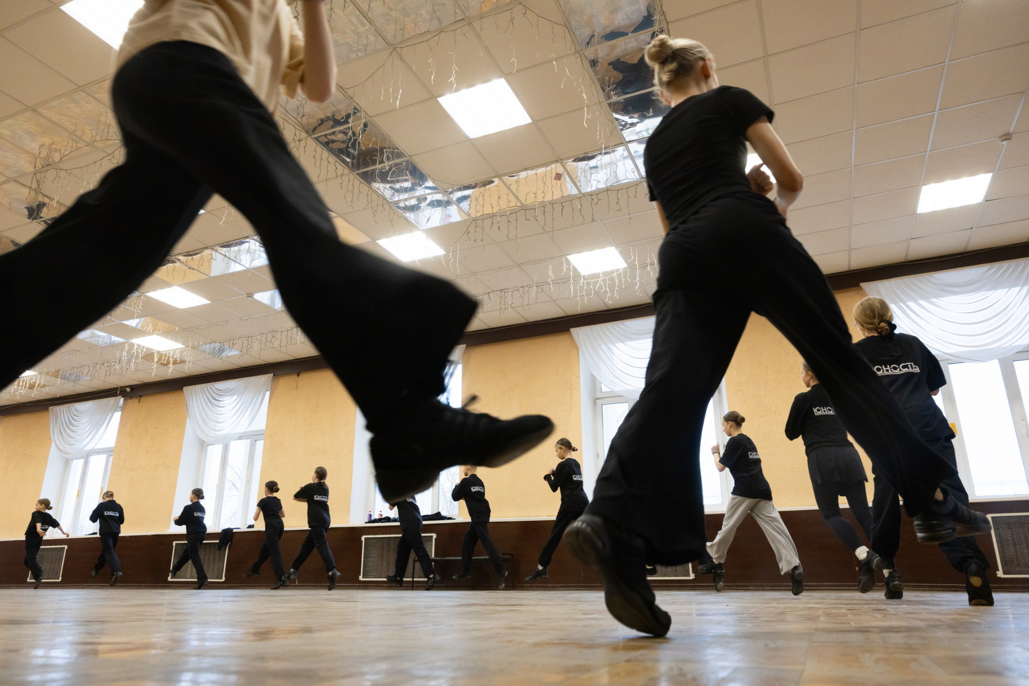 Сначала начинается разминка — обязательно надо хорошо разогреться. Потом идет постановочная программа. Я работаю не один, у меня есть помощники. Один — в детской группе, другой — в основной.