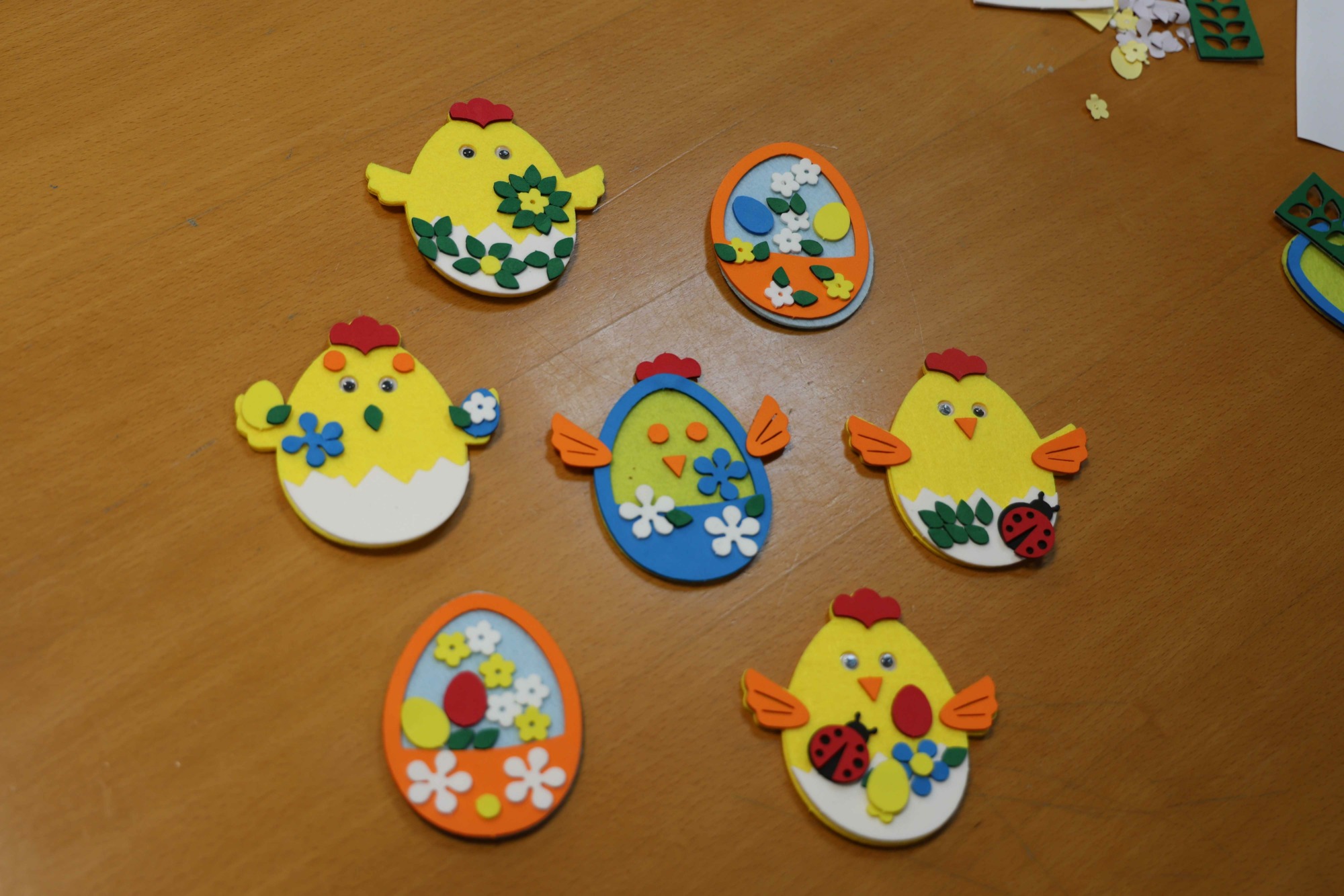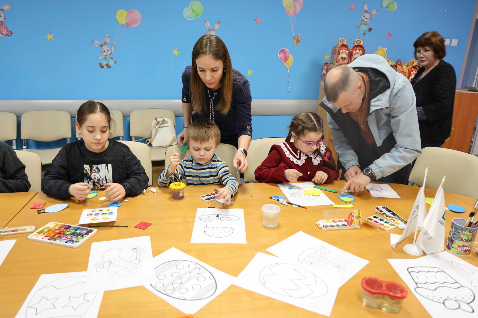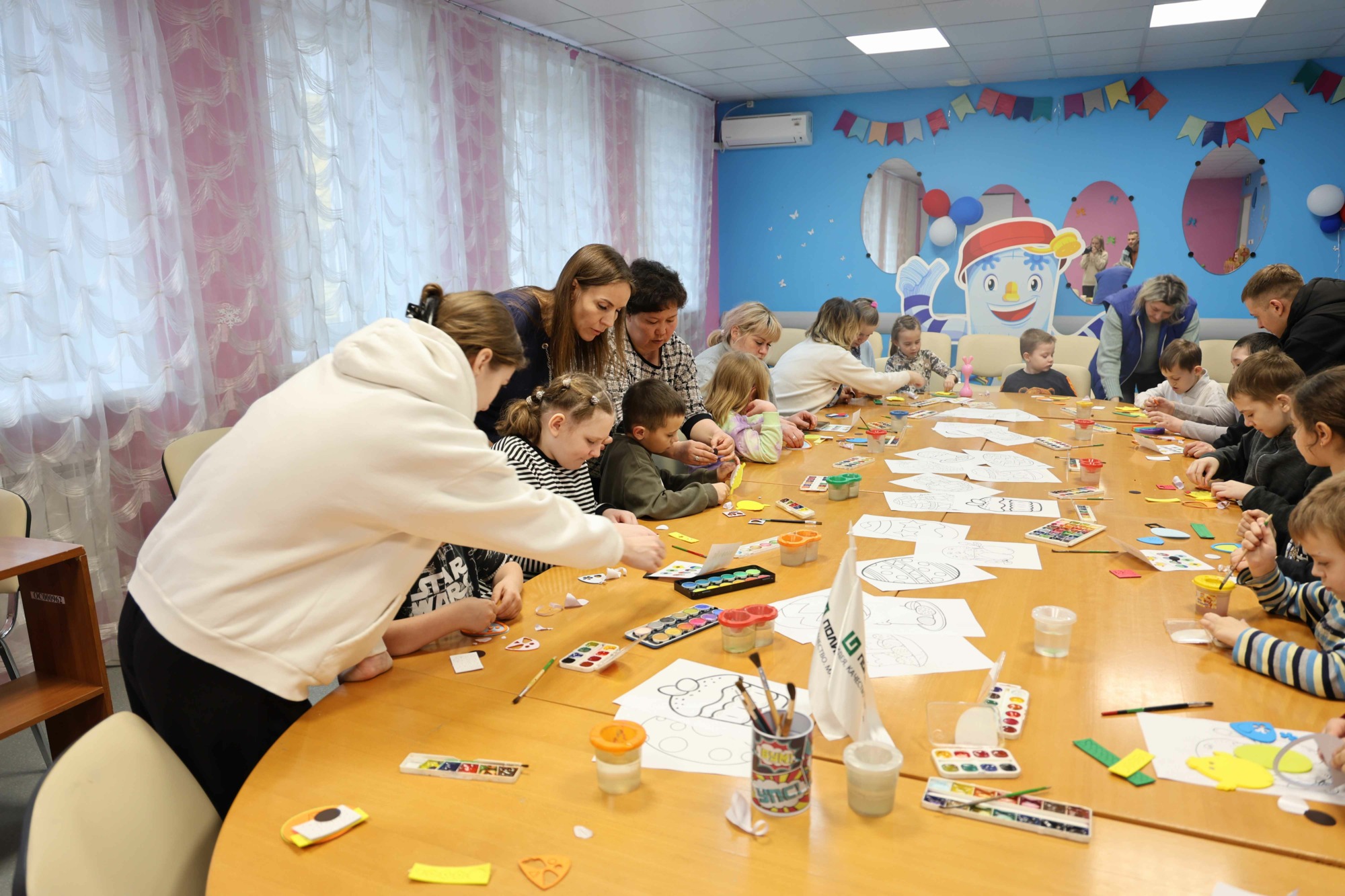 Юные участники вместе с волонтерами мастерили праздничные сувениры в форме цыплят и пасхальных яиц, а также занимались раскрашиванием тематических иллюстраций. В завершение весеннего праздника всем ребятам были вручены наборы сладостей от промышленного партнера.