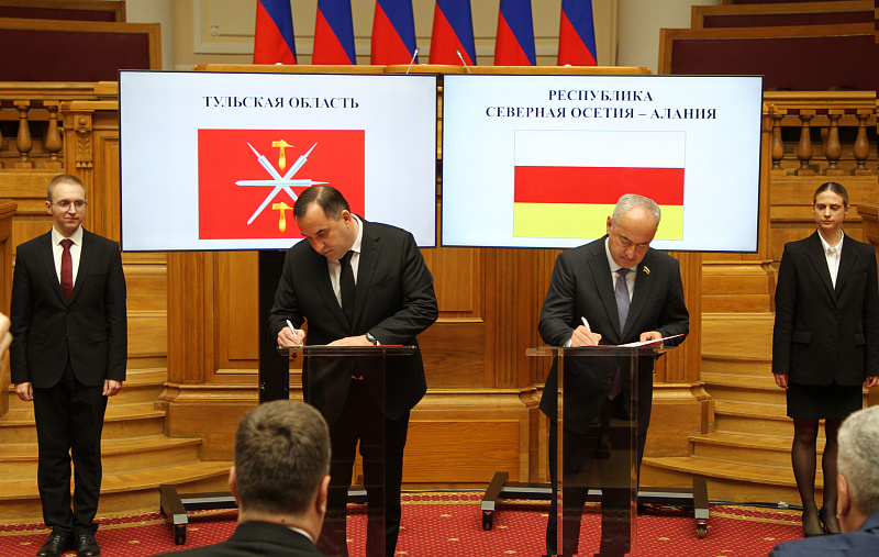 В рамках мероприятий Совета законодателей при Федеральном Собрании Российской Федерации состоялась церемония подписания межпарламентских соглашений о сотрудничестве между законодательными органами субъектов Федерации. В их числе – договор о двустороннем взаимодействии по актуальным вопросам законотворчества между Тульской областной Думой и Парламентом Республики Северная Осетия – Алания.
