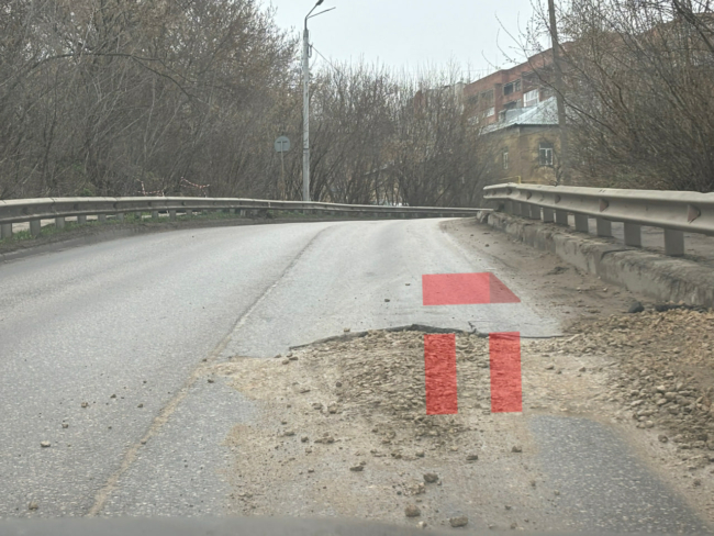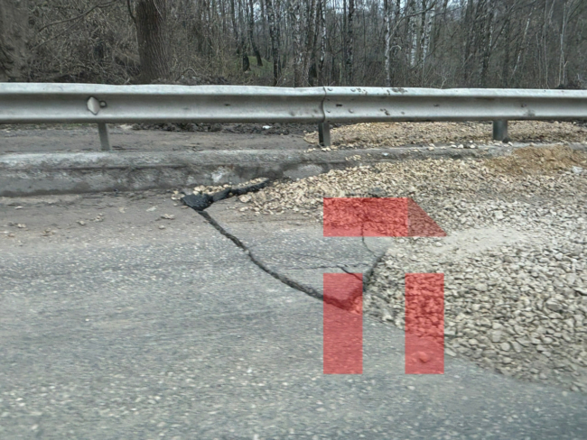 В одном месте треснул асфальт, из-за чего образовалась яма. Ее, конечно, присыпали щебенкой, однако полностью решить проблему не удалось — автомобилисты переживают за свои колеса и старательно объезжают яму. Иногда по встречной полосе.