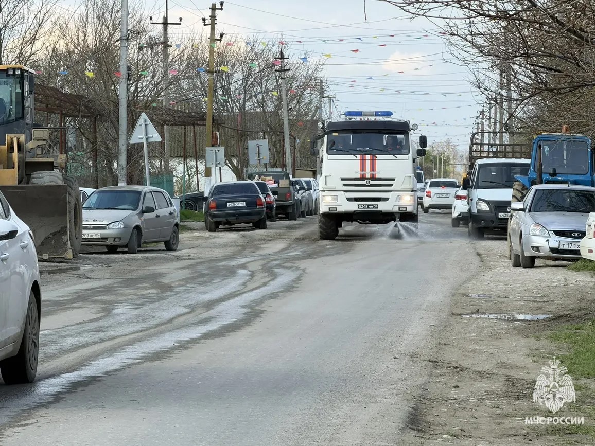 Состав аэромобильной группировки из Тульского спасательного центра МЧС восстанавливает дороги и дезинфицирует территории в селах Хасавюртовского района в Дагестане.