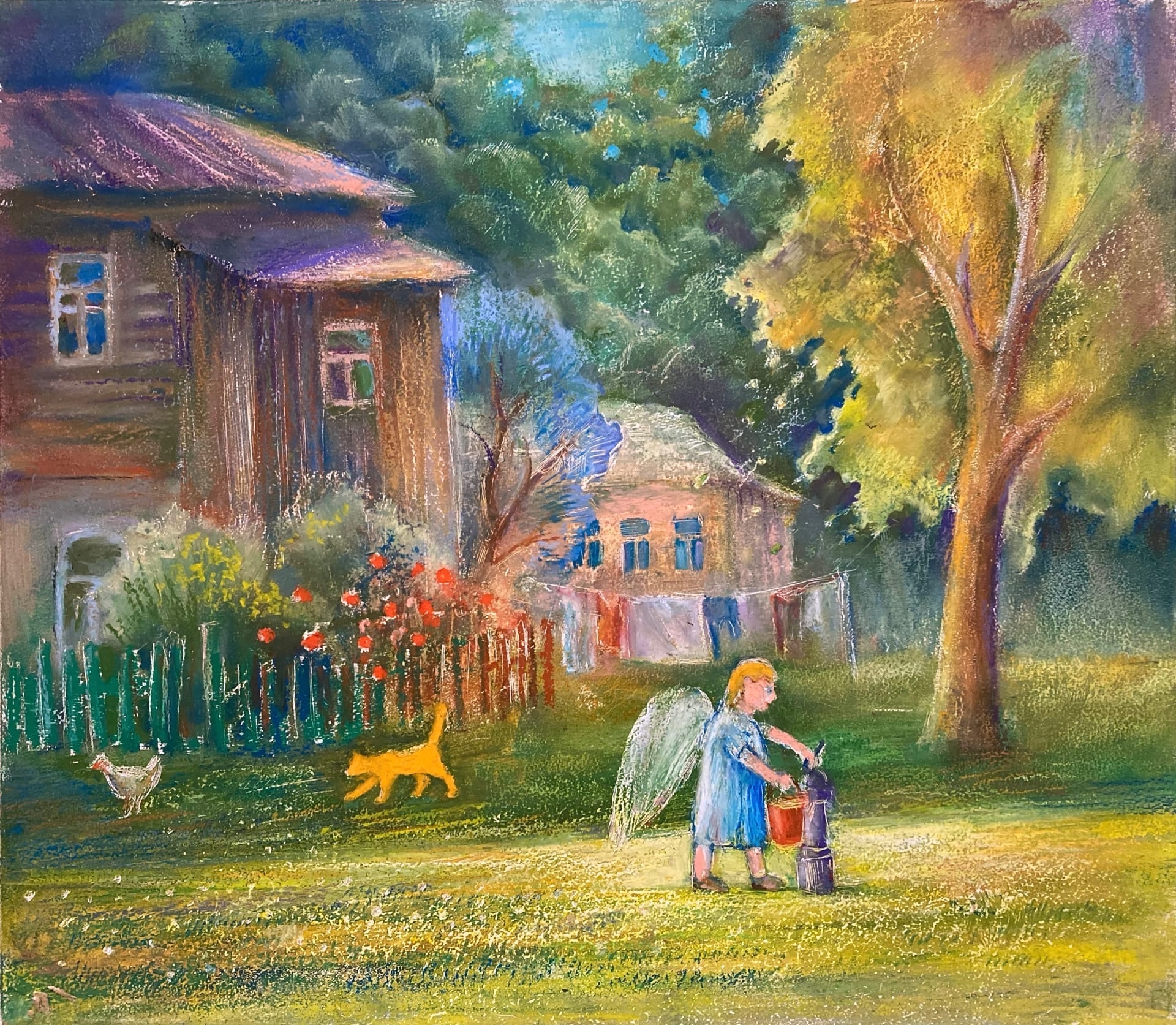 Еще эти пейзажи и связана с детскими воспоминаниями. Думаю, меня заставляет рисовать желание вернуться в детство. Ведь оно само по себе счастье: ты впервые видишь мир, еще незамутненным, открытым, нециничным взглядом.