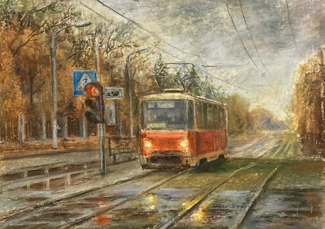 Среди любимых образов тульского фланера – трамваи и ангелы. Увидеть их на картинах Александра можно с завидной регулярностью. И если с трамваями все плюс-минус понятно, то с ангелами – не совсем.