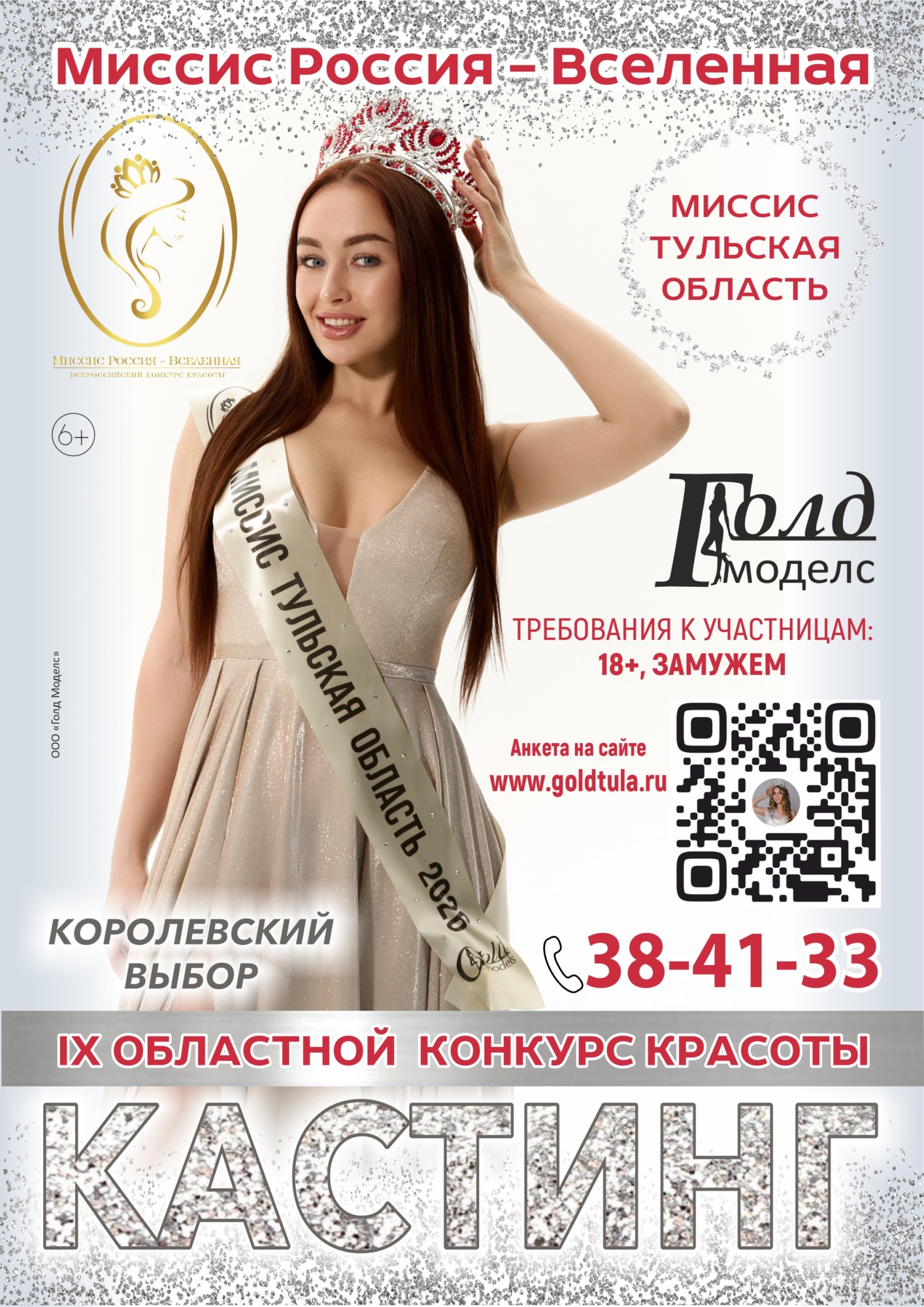 Параллельно идет набор и на конкурс «Миссис Тульская область — Королевский выбор 2027». Здесь требования другие: участвовать могут женщины старше 18 лет, состоящие в браке, наличие детей приветствуется. Для конкурсанток также подготовили насыщенную программу с репетициями, мастер-классами, фотосессиями, модным показом и финальным шоу. Победительнице обещают право представить Тульскую область на всероссийском конкурсе «Миссис Россия — Вселенная».