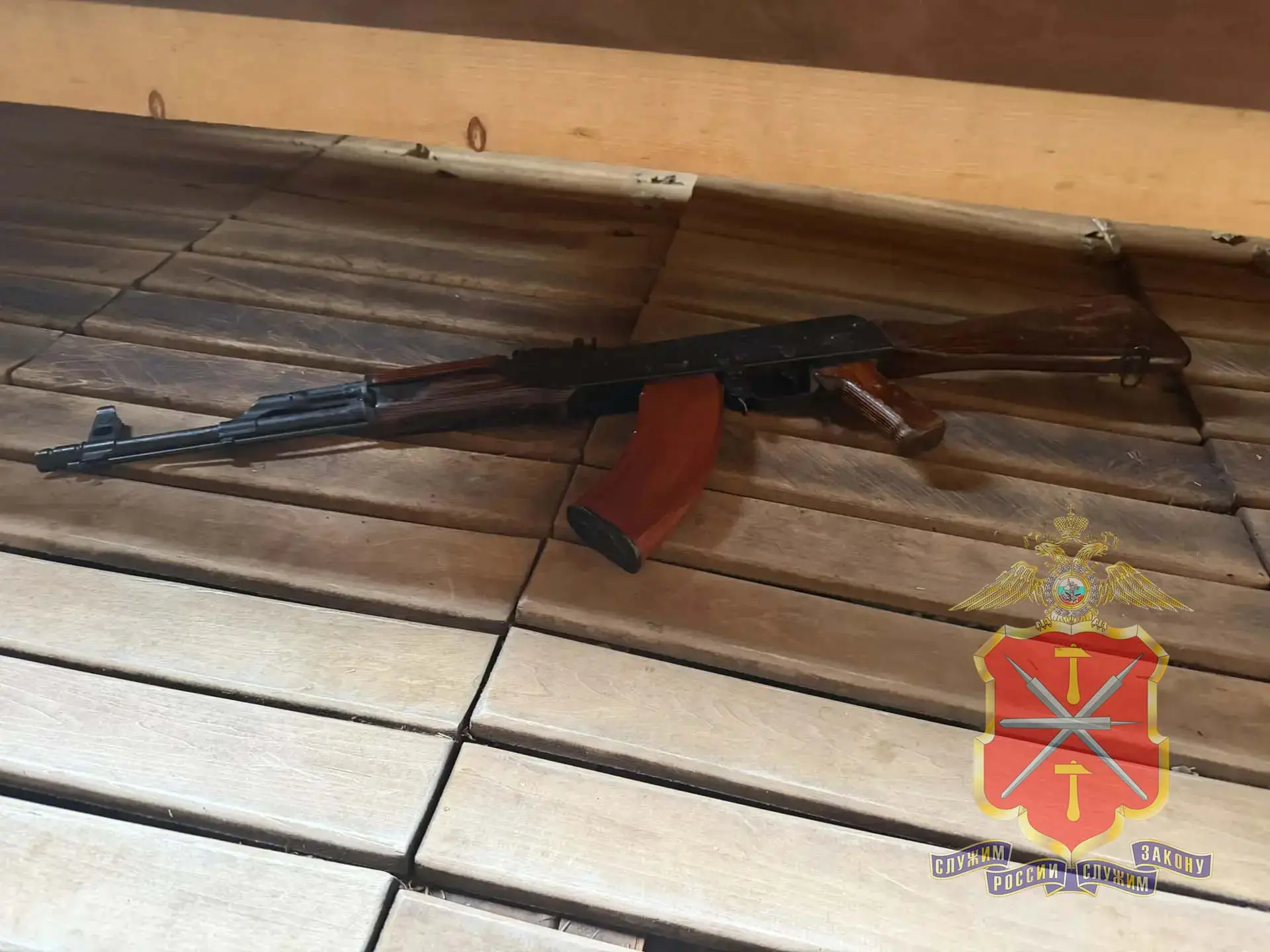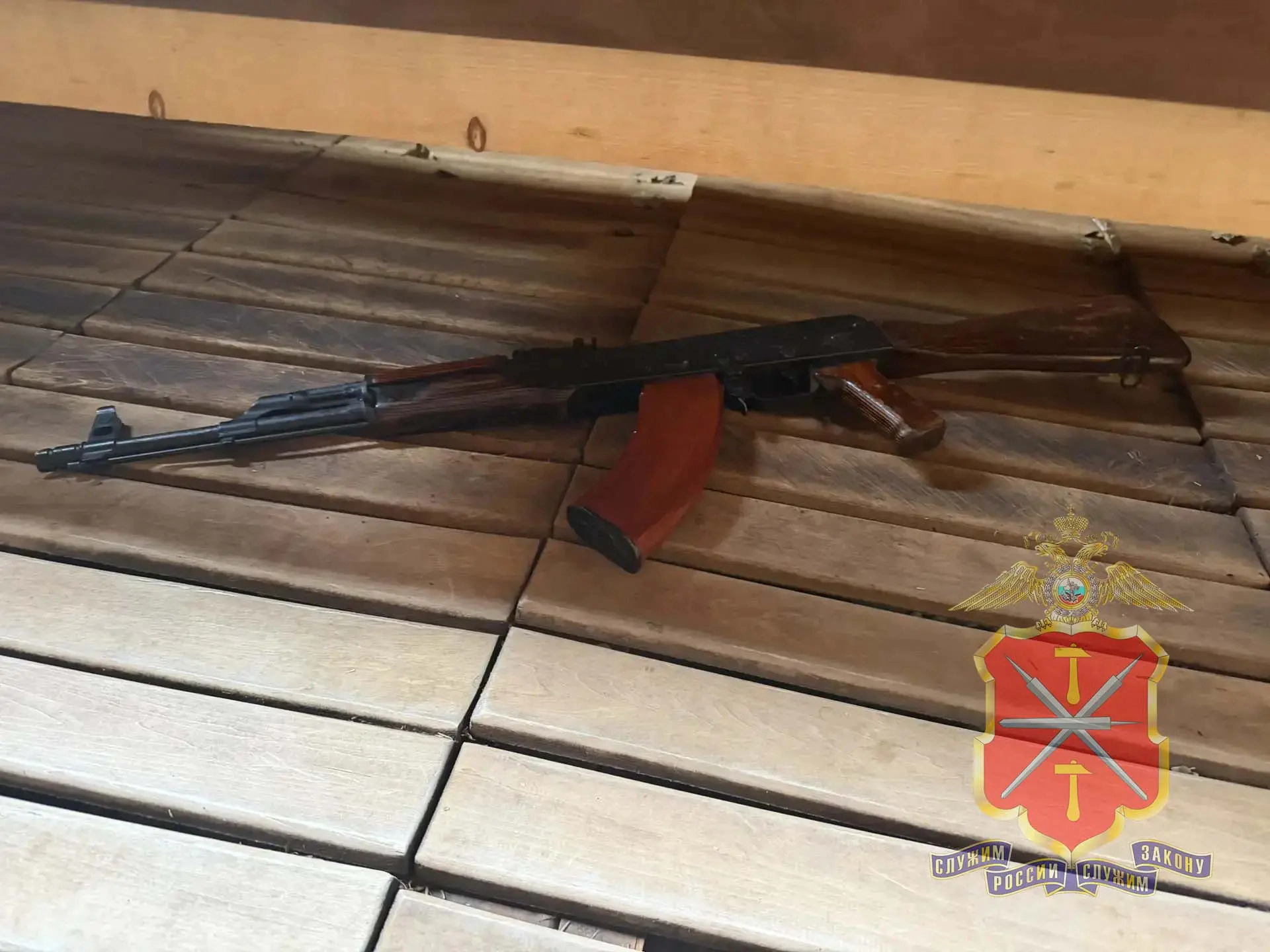 У задержанного изъяли охолощенный автомат Калашникова. Если дополнительный материал подтвердится, молодому человеку может грозить штраф с конфискацией оружия.