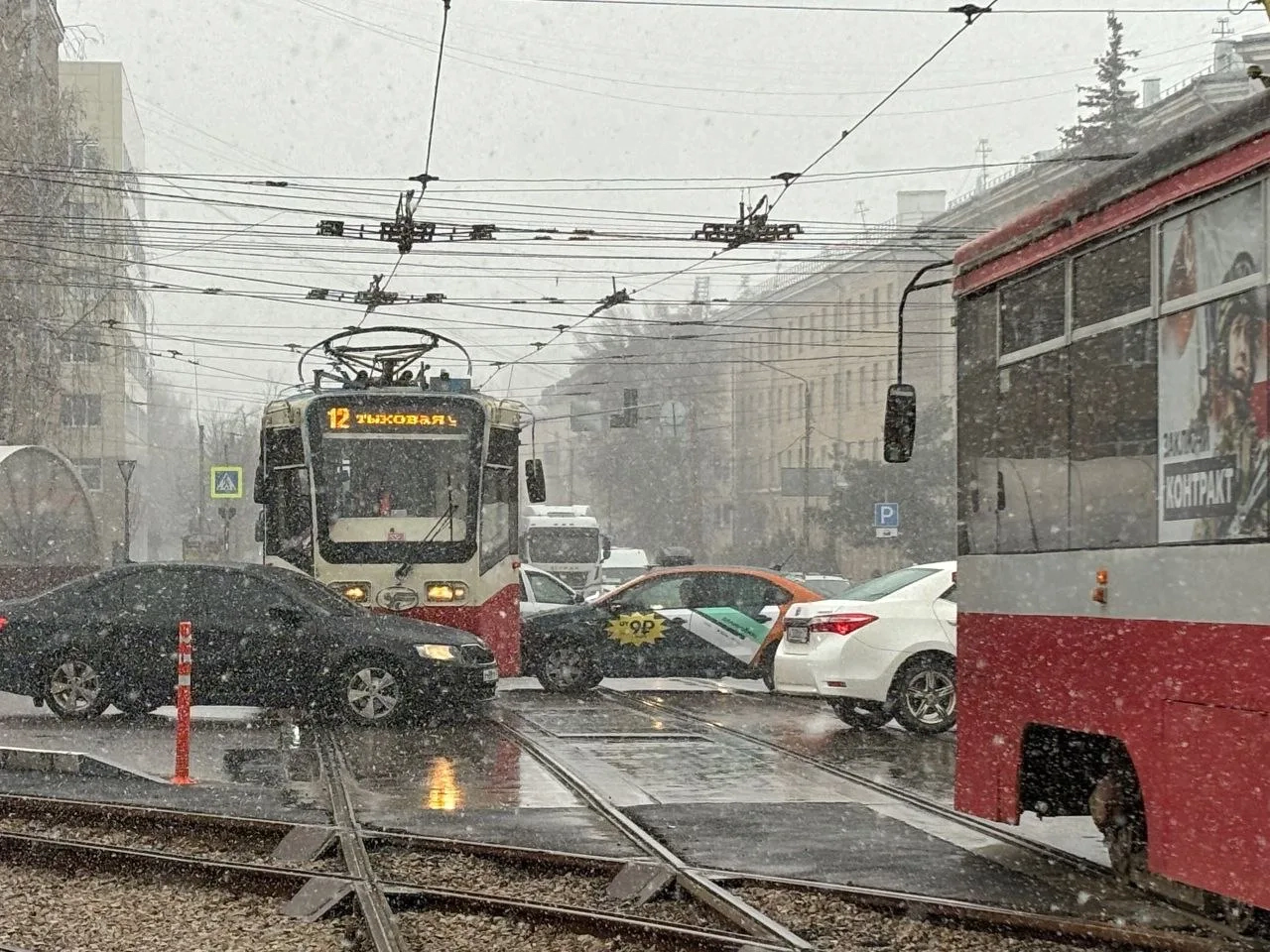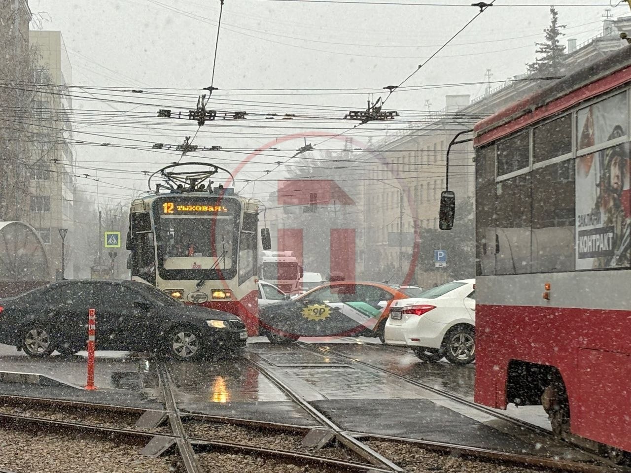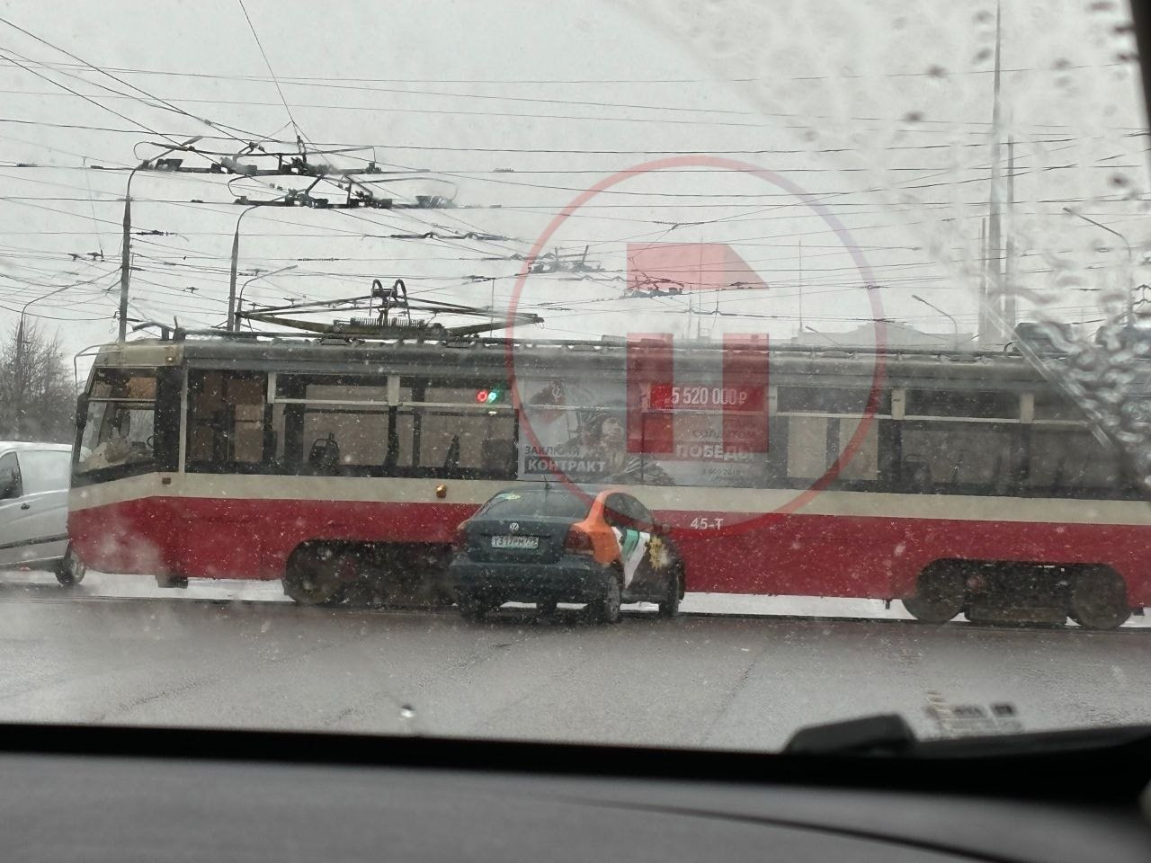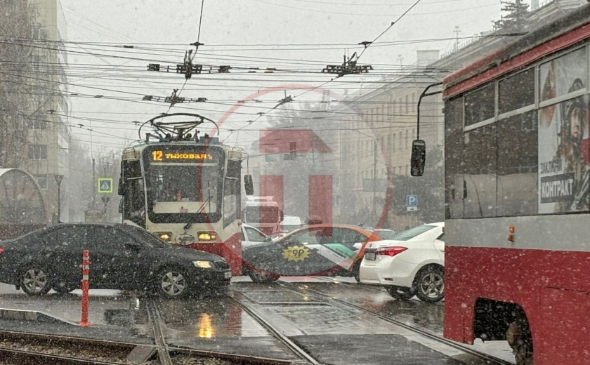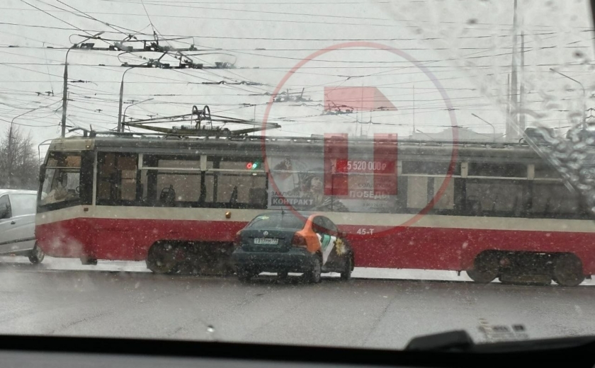 На пересечении проспекта Ленина и улицы Станиславского в Туле автомобиль каршеринга столкнулся с трамваем. Авария произошла около часа назад.
