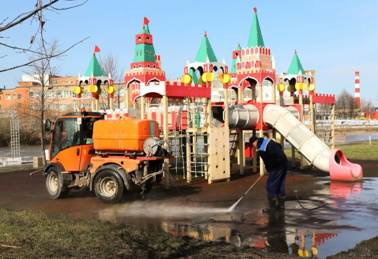 Дорожки, спортивные и детские площадки вместе с оборудованием уже промыли, мусор и сухостой собрали. С территории вывезли 20 кубометров отходов — этот показатель сопоставим с паводковыми периодами прошлых лет.