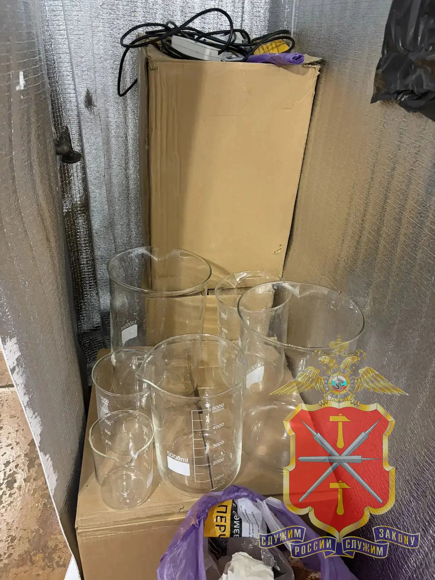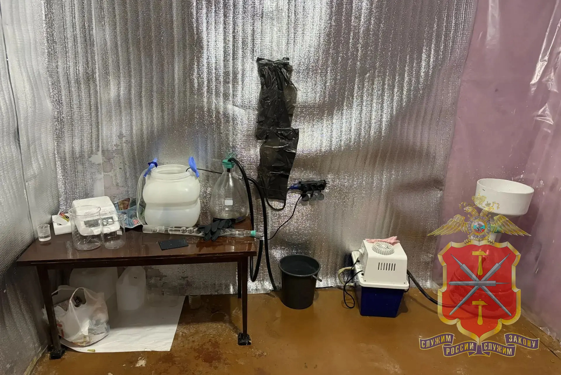 Во время осмотра дома, которым пользовался старший из подозреваемых, оперативники нашли химические реагенты, лабораторное оборудование, средства защиты и контейнеры с веществами. Экспертиза показала, что часть изъятого — это мефедрон общей массой больше 1,4 килограмма.