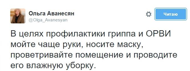 Автор текста посоветовал тулякам доброго здоровья, напомнил о профилактике гриппа и словах экс-министра здравоохранения Тульской области Ольги Аванесян, которая советовала мыть руки, носить маску и проветривать помещения тогда, когда министерство осенью 2015 года не обеспечило закупку необходимых лекарств.