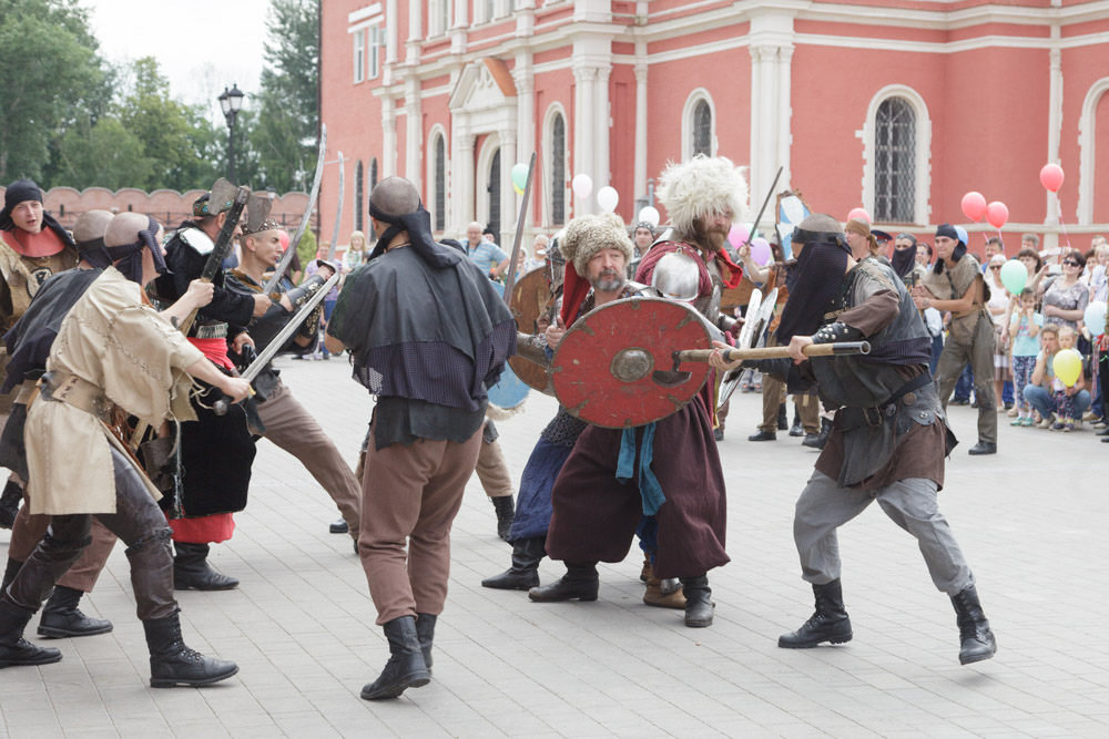 По завершению праздничной литургии в храме колокольни Успенского собора, на соборной площади состоялось театрализованное представление рассказывающее об обороне Тульского кремля в 1552 году от войск хана Герея.