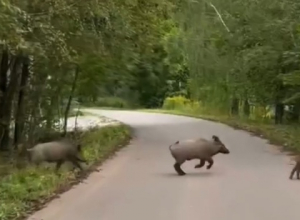 Дмитрий Ярцев встретил семью кабанов по пути в Суворовский район