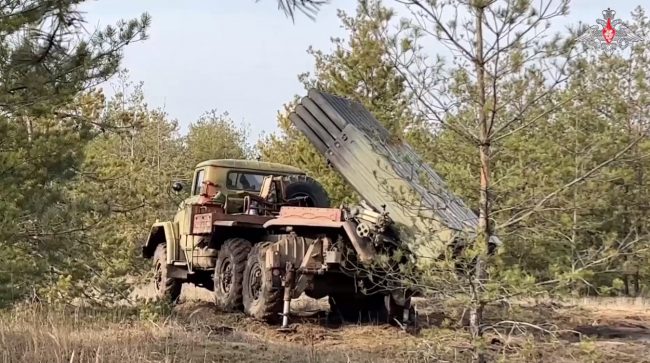 Минобороны РФ опубликовало кадры работы тульской РСЗО "Град" в ходе CВО
