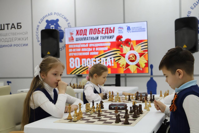 В Штабе «Единой России» юные туляки приняли участие в Шахматном турнире «ХОД ПОБЕДЫ» в честь 80-летия Великой Победы