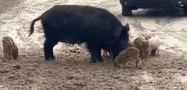 Дмитрий Ярцев встретил семью кабанов по пути в Суворовский район