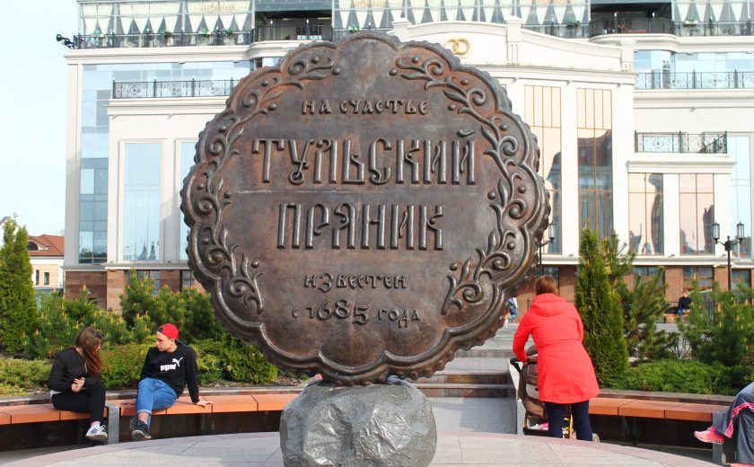 - Бронзовый тульский пряник украшает главную площадь города — площадь Ленина. Надпись на прянике — «На счастье».