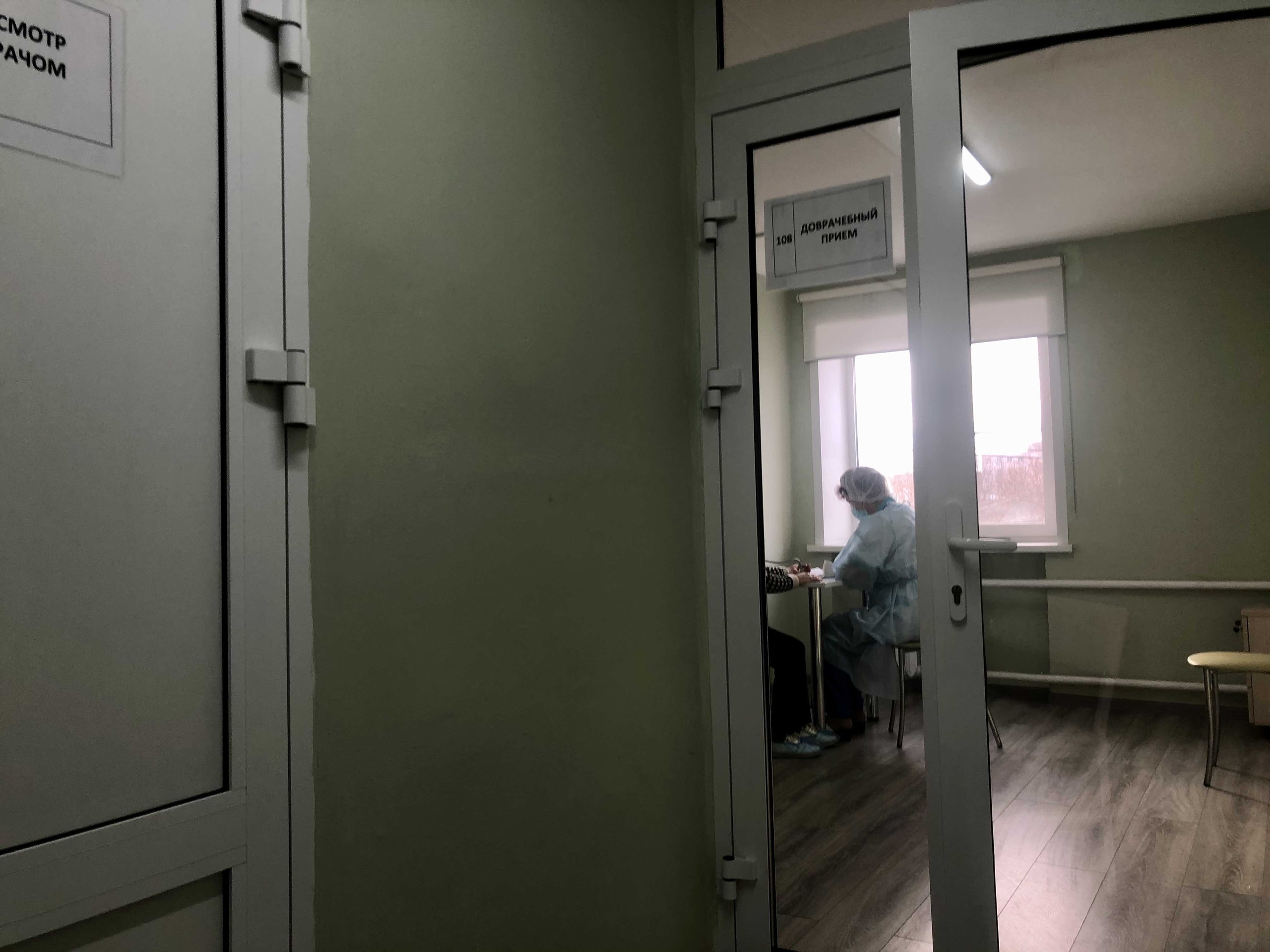 Подходим к самому интересному. Наш пункт вакцинации работает на базе городской клинической больницы имени Лазарева в Зареченском районе Тулы. Под пункт отдана часть первого этажа стационара. На входе, как на выборах, встречают медсестры, которые переписывают паспортные данные и направляют в комнату для заполнения анкет.
