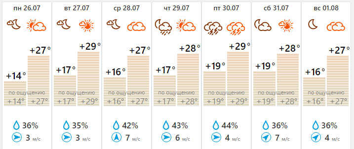 В Тульской области дожди с грозами продлятся до 30 июля. При этом температура воздуха будет колебаться в промежутке +28…+30°. К первому августа осадки прекратятся, но и солнце не вернется. Ожидается облачность с порывами ветра до 9 м/с.