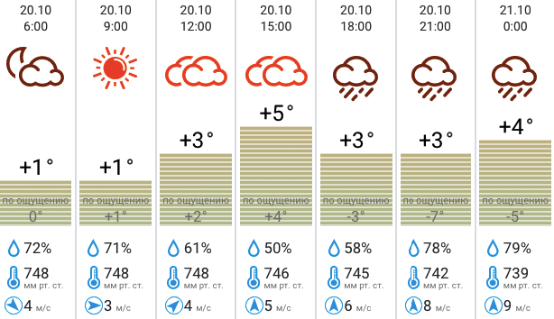20 октября в Туле будет облачно. Синоптики прогнозируют небольшие осадки (до 1 мм по данным Гидрометцентра). Скорость западного ветра составит 7-12 м/с. При этом в регионе продолжит холодать — днем в среду столбики термометров покажут всего +2…+6 градусов.