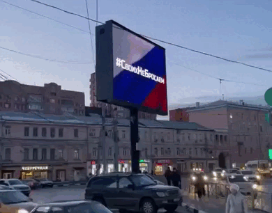 В Туле на экранах появились баннеры в поддержку жителей Донецкой и Луганской народных республик. По словам жителей оружейной столицы, надпись #СвоихНеБросаем мелькает по всему городу.