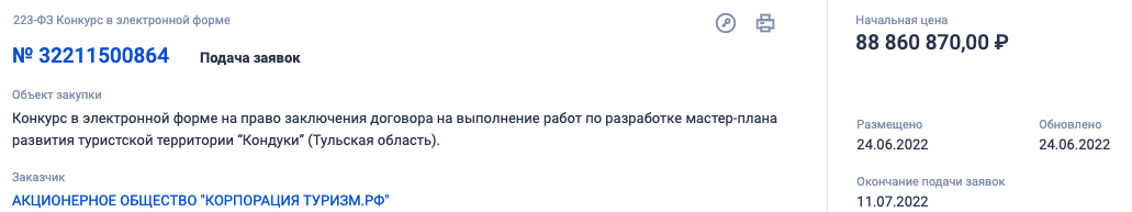 Мастер-план Кондуков в Тульской области будет стоить 88,86 млн рублей. Разработку проекта развития туристской территории в Узловском районе заказывает корпорация «Туризм.РФ». Выполнить работу необходимо в течение пяти месяцев.