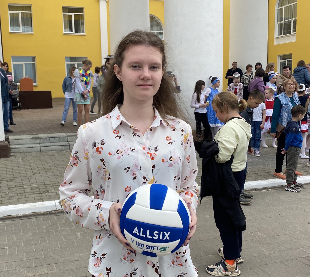 А вот Анастасия Пушкарева занимается любительским волейболом больше 7 лет, девочка надеется, что новый мяч принесет ее команде новые победы.