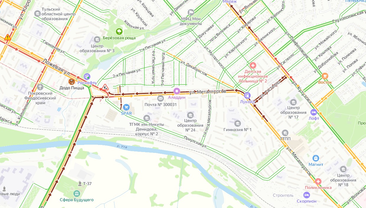 Утром во вторник, 25 октября, на улице Металлургов в Туле собралась огромная пробка. Движение серьезно затруднено в сторону Восточного обвода, а также на улице Гастелло.