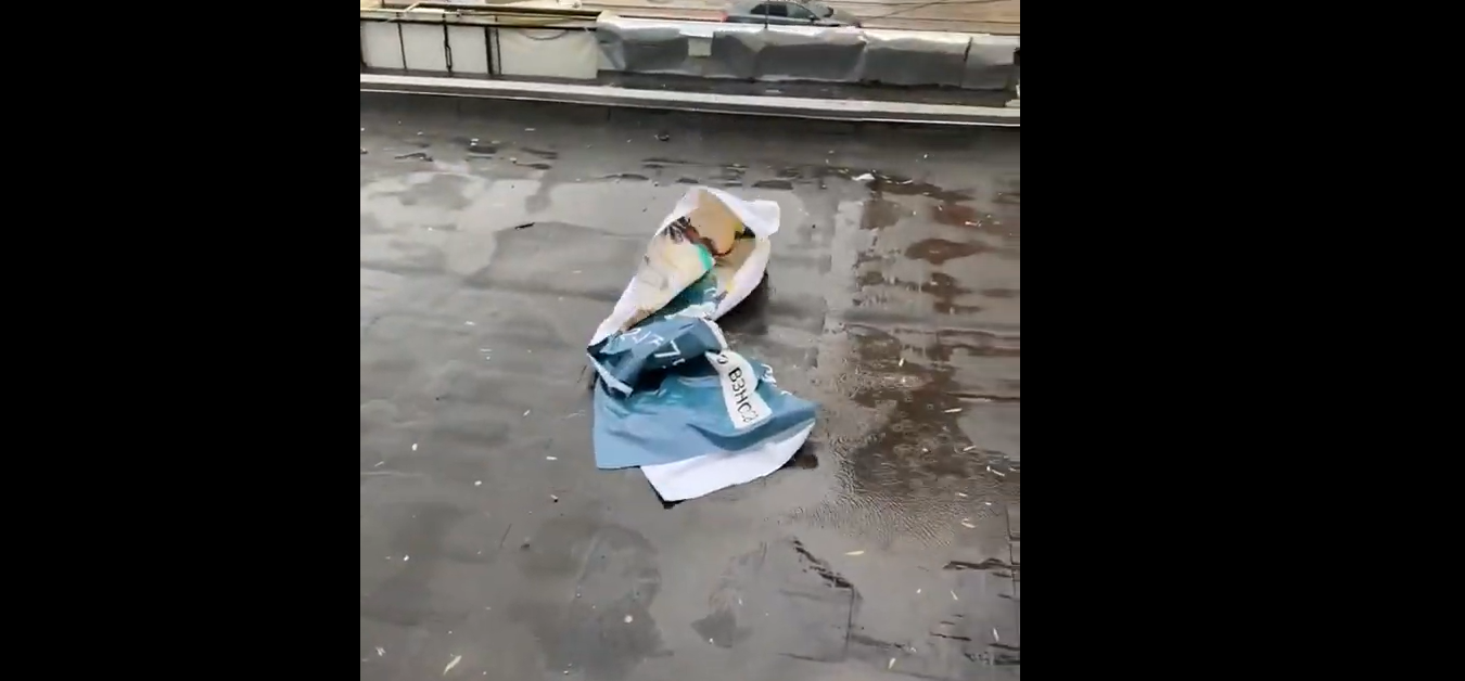 В Туле рекламный баннер сорвался с фасада здания из-за сильного ветра
